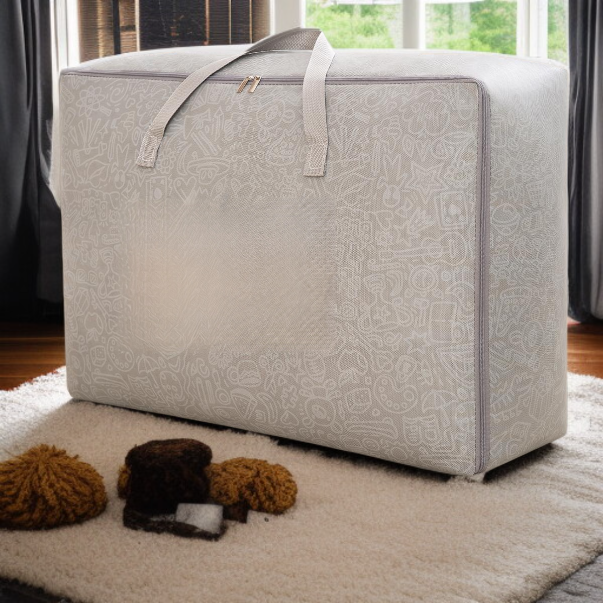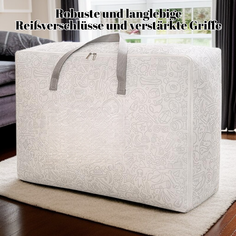 ● Große Kapazität ermöglicht die praktische und platzsparende Aufbewahrung von Bettdecken, Kleidung und anderen Textilien im Schlafzimmer oder Kleiderschrank. ● Hochwertiges, atmungsaktives Material schützt Ihre Sachen vor Staub, Feuchtigkeit und Schimmel und sorgt für langanhaltende Frische. ● Dank des robusten Reißverschlusses und der verstärkten Griffe ist die Tasche besonders langlebig und einfach zu transportieren, auch bei schwerer Befüllung. ● Durch das transparente Sichtfenster behalten Sie stets den Überblick über den Inhalt, ohne die Tasche öffnen zu müssen – ideal für eine organisierte Aufbewahrung. ● Die Aufbewahrungstasche lässt sich bei Nichtgebrauch platzsparend zusammenfalten und verstauen, perfekt für kleine Wohnungen oder begrenzten Stauraum.